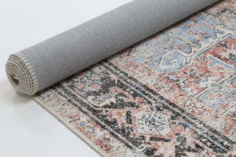 Annabel Distressed Vintage Terracotta & Sky Blue Rug - VITAL 2664-07 (with fringe)