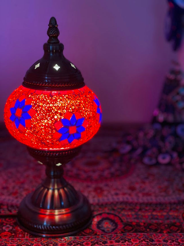 The Turkish mosaic table lamp is a beautiful decorative lamp that adds elegance to any space. It is typically made with pieces of coloured glass arranged in intricate mosaic patterns, creating a stunning visual display when the lamp is lit